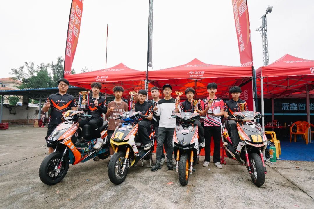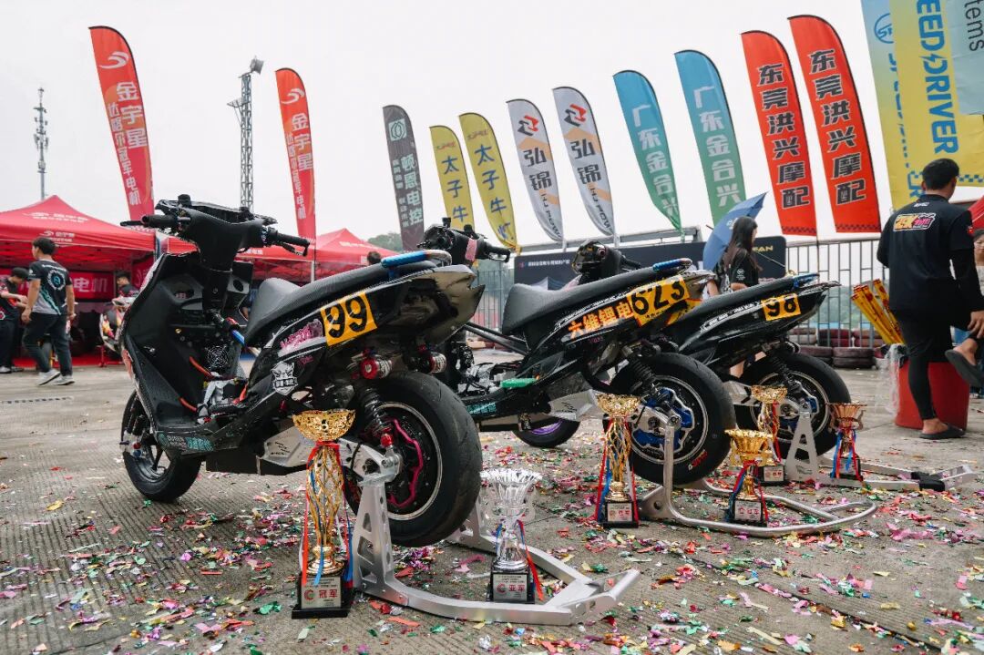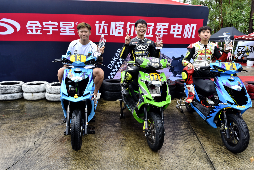继五月中时的第一回合比赛之后,金宇星电机再次亮相三水的这场电动车角逐中。而在此前的第一回合比赛里,采用金宇星电机的赛车,夺得了顿恩电控组 A 组的冠、亚军,并拿下了 A 组最快圈速奖。